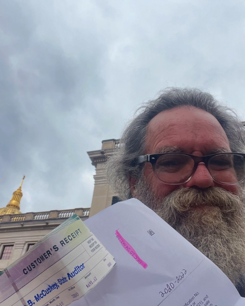 After scambling funds, trekkin’ to the statets capital and payin’ way to much to keep my shed in my possession I left the the State Auditors office with only a simple receipt for all my effort and that was enough. Somehow, keeping my shitty little shed was all that mattered, and still does.